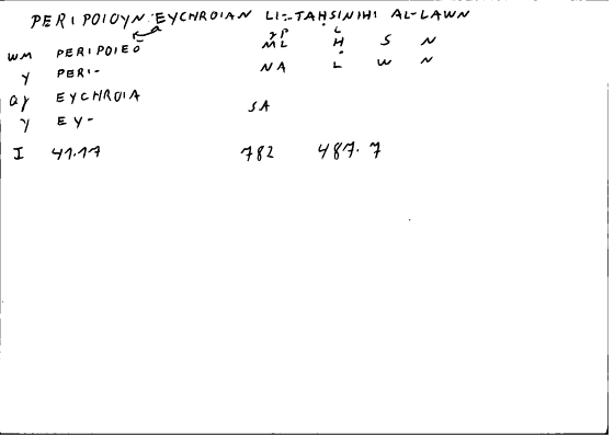 | Lexeme | εὔχροια | لون |