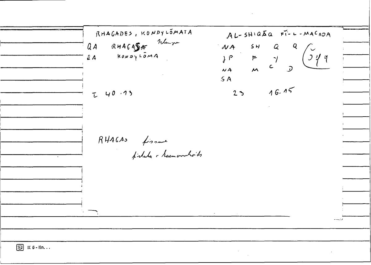 | Expression | ῥαγάδες, κονδυλώματα | al-šuqāqu wa-llaḏī yakūnu fī l-maqʿadati |